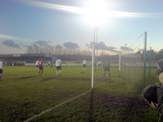 In the next foray on the Vauxhall goal we had what could have been a penalty turned down when, in the same position for his previous goal, Constable was clattered on the edge of the area. Saying it was the edge was debatable though because there were no clear line markings to define the area anyway. The free kick again fell for Constable but this time Lake saved it.